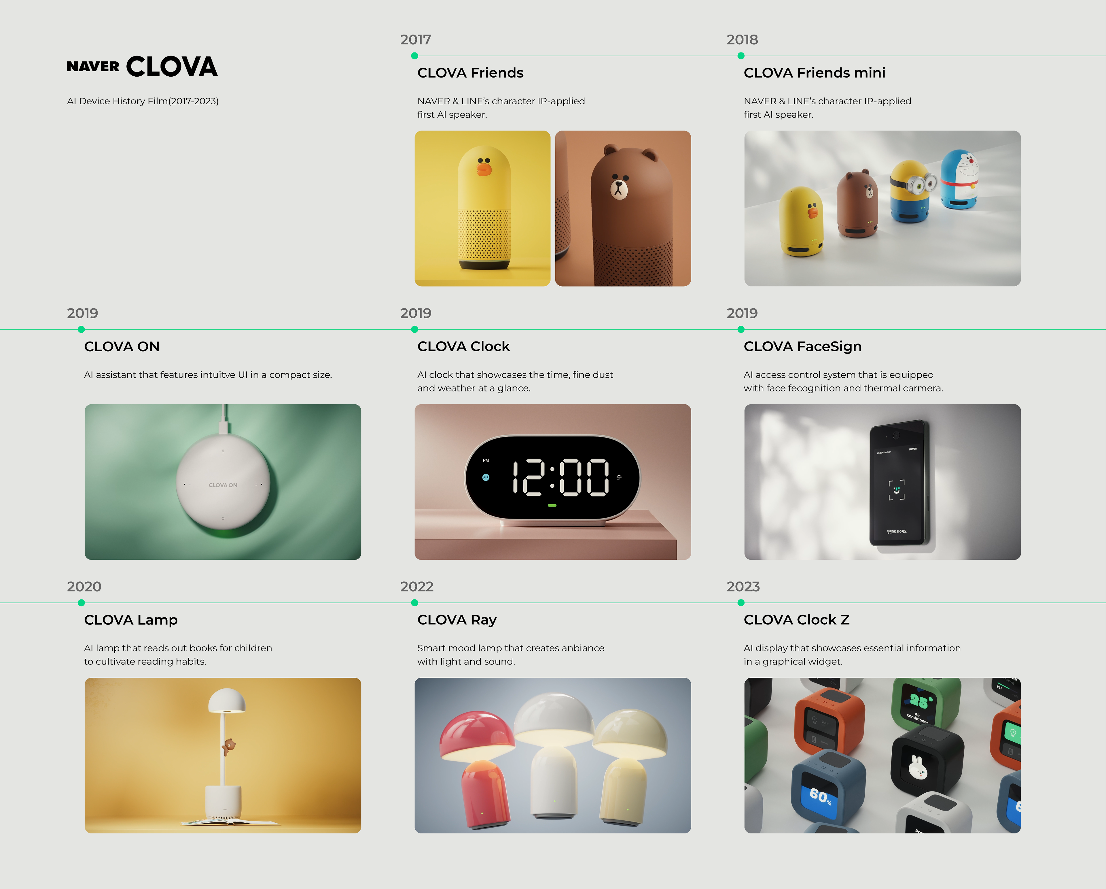 2017년부터 네이버 클로바에서 출시된 AI Device들을 모아 아카이빙 형태의 히스토리 필름을 제작하였습니다.